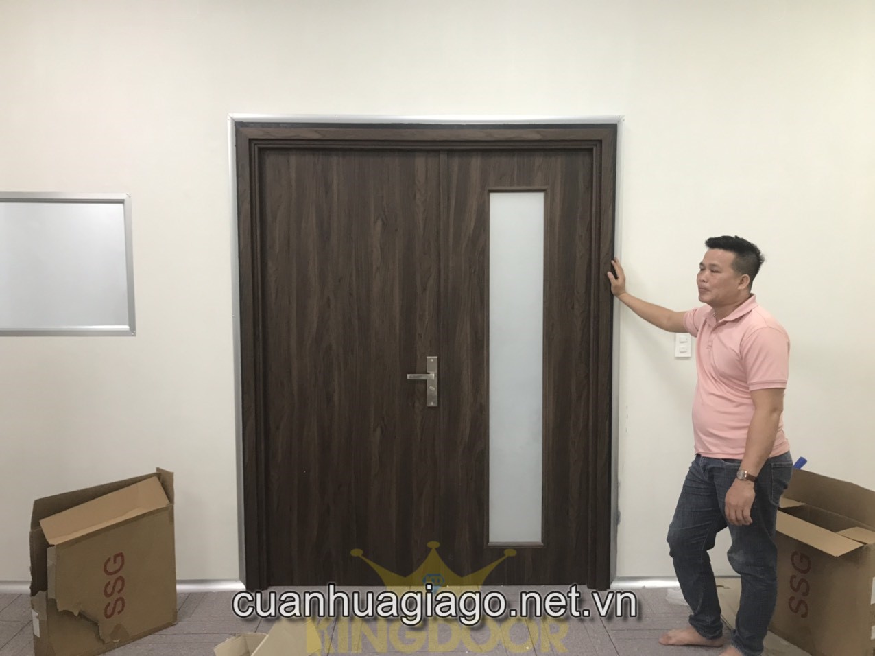Cửa nhựa Composite cửa đôi có ô kính