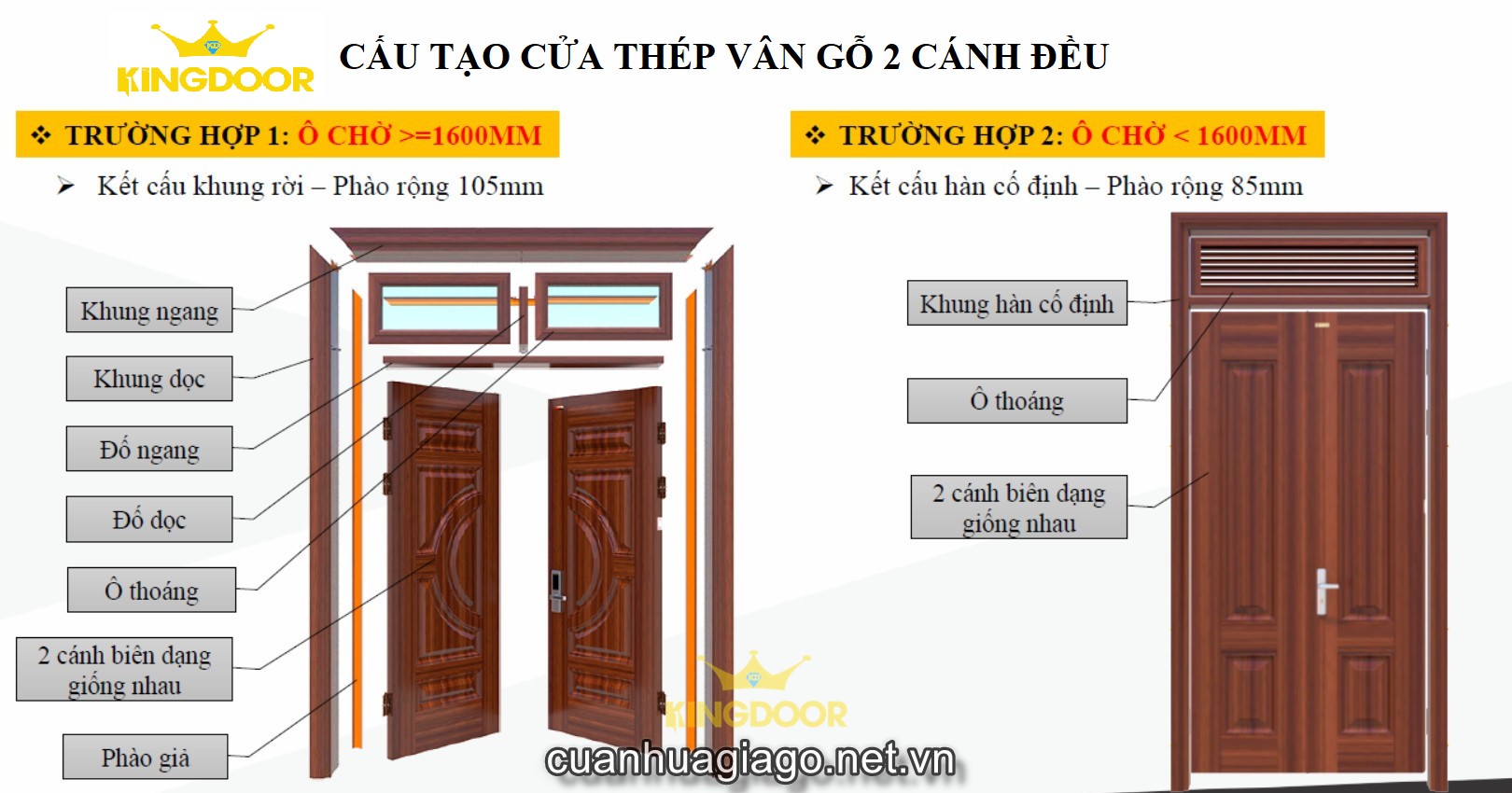Giá cửa thép vân gỗ 2 cánh đều