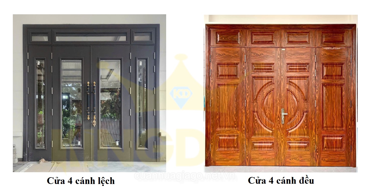 Cửa thép vân gỗ 4 cánh lệch