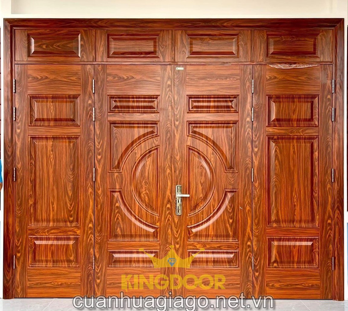 _ Cửa thép vân gỗ 4 cánh là dòng cửa được lắp đặt cho vị trí cửa chính, cửa sảnh. Các vị trí ngoài trời, ưu tiên chịu nắng và gió đều được khách hàng tin tưởng sử dụng dòng cửa này. Đến với Kingdoor, tìm hiểu giá cửa thép vân gỗ 4 cánh tại Phú Nhuận ngay nhé: