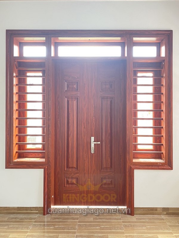 _ Cửa thép vân gỗ Kingdoor 2 cánh là dòng cửa được lắp đặt cho vị trí cửa chính, cửa sảnh. cửa ban công. Các vị trí ngoài trời, ưu tiên chịu nắng và gió đều được khách hàng tin tưởng sử dụng dòng cửa này. Đến với Kingdoor, tìm hiểu giá cửa thép vân gỗ 2 cánh tại Phú Nhuận ngay nhé: